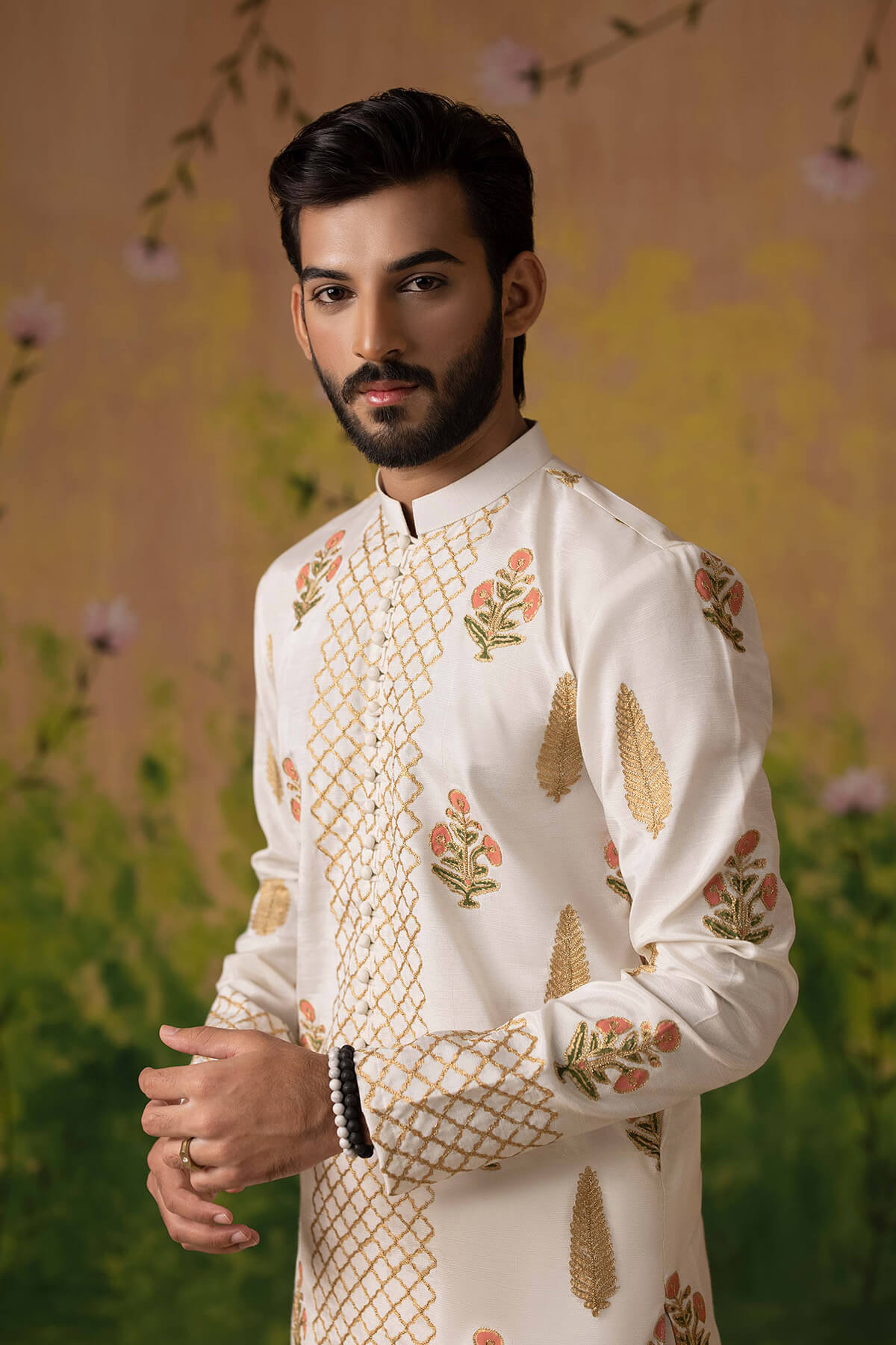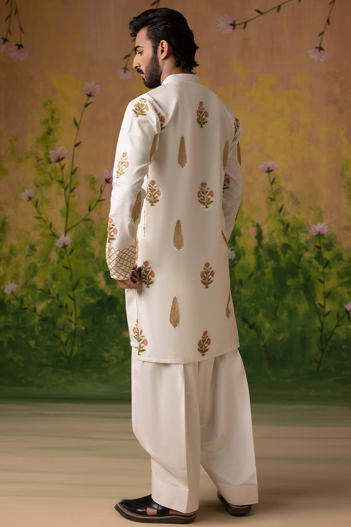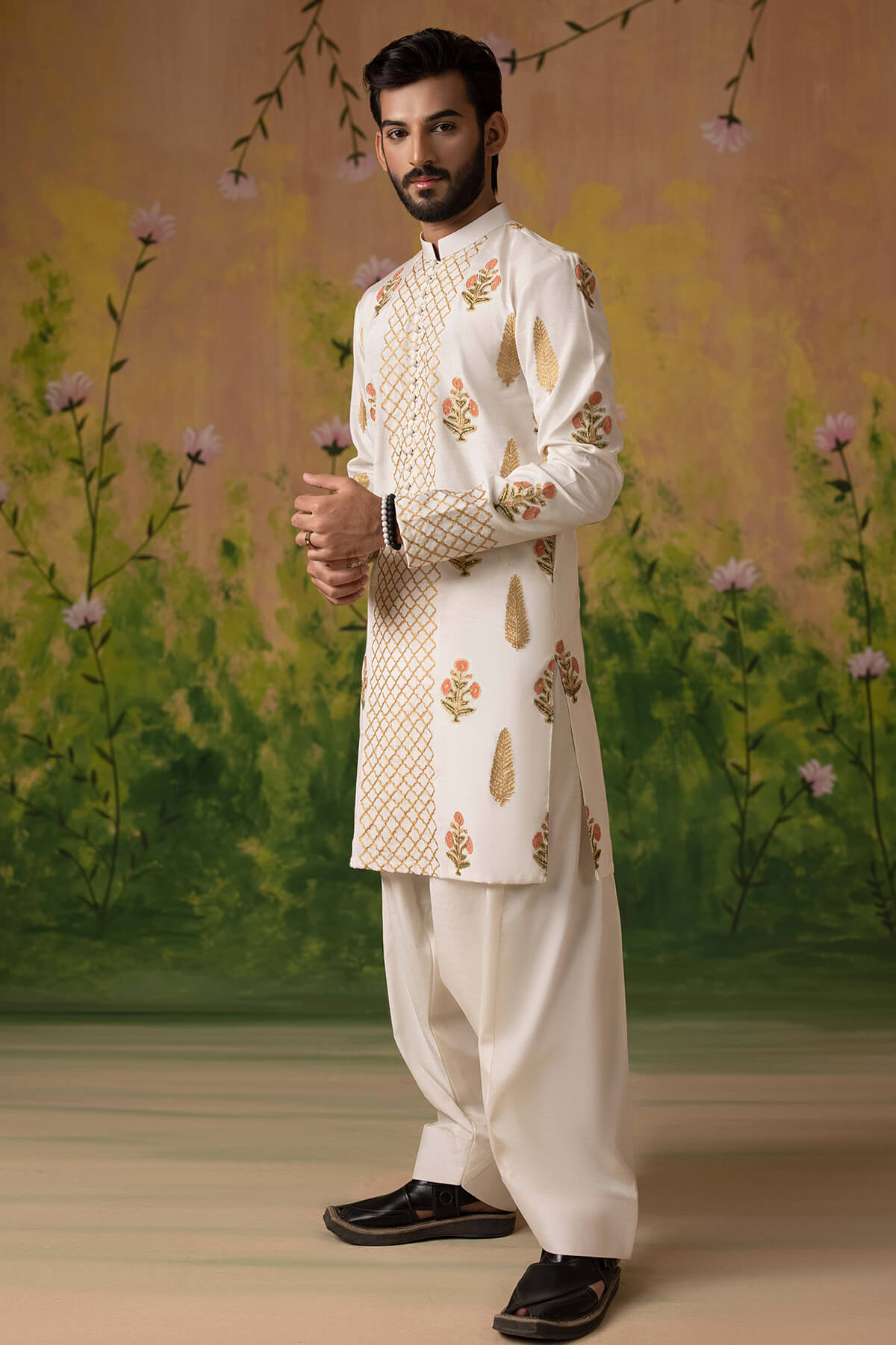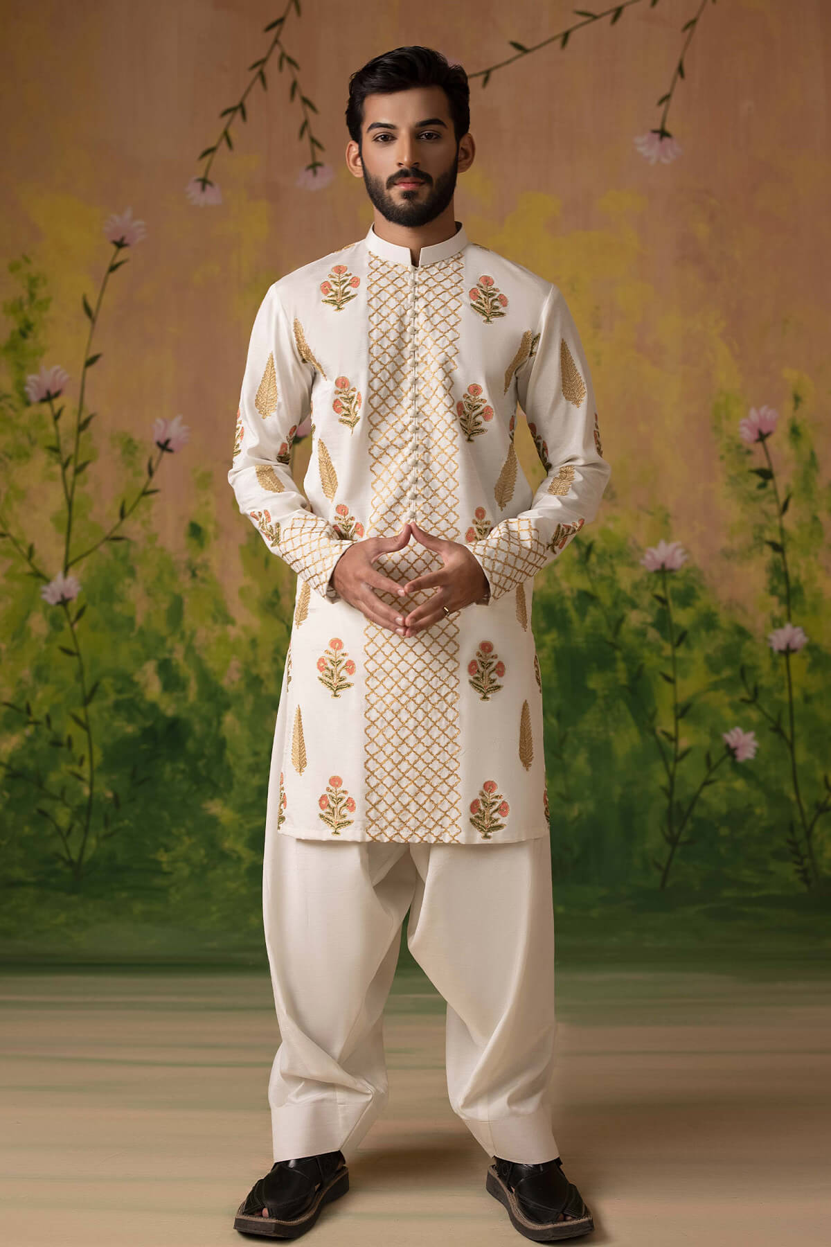 Block printed tila embroidered kurta paired with shalwar